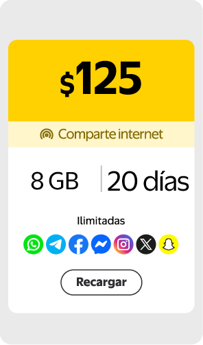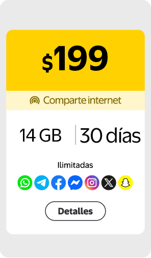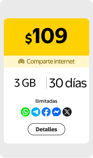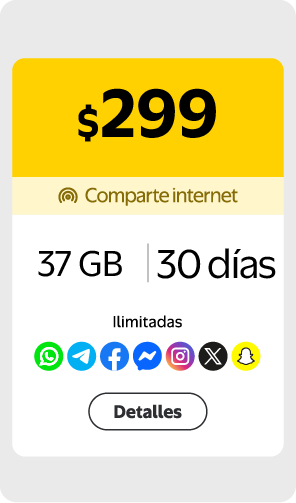 $300 obten internet + Redes Sociales Ilimitadas por 30 días , llamadas y mensajes MX EEUU CAN