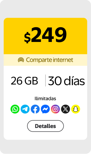 $300 obten internet + Redes Sociales Ilimitadas por 30 días , llamadas y mensajes MX EEUU CAN